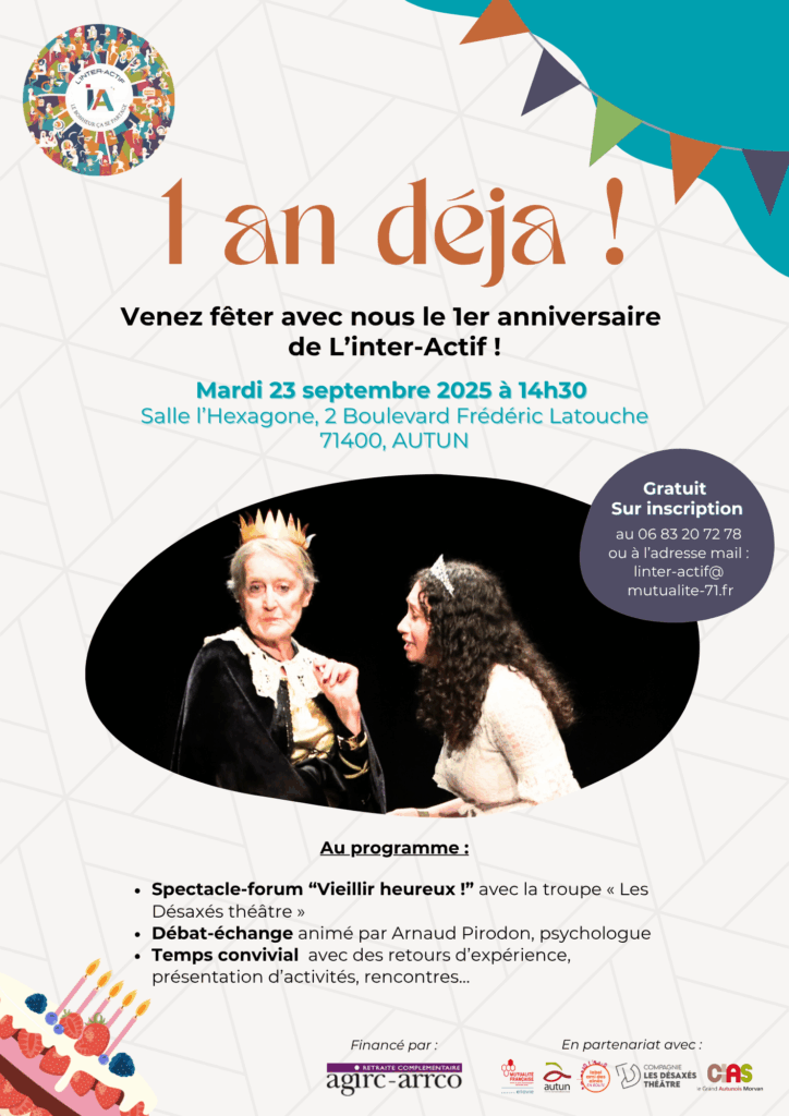L’Inter-Actif souffle sa première bougie… et vous êtes invités à fêter ça avec nous ! Pour marquer cette belle étape, un après-midi spécial est organisé autour de la convivialité, de l’échange et du partage.